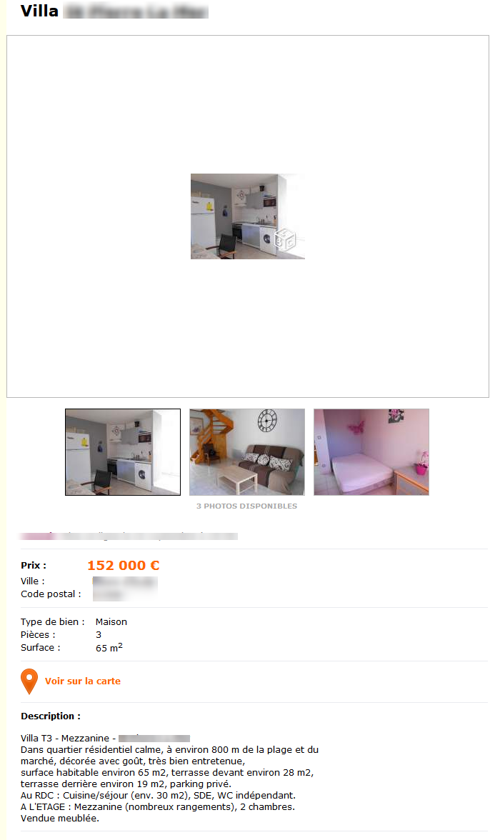 Après, le reste de l’annonce n’est pas si mauvais. C’est plutôt détaillé malgré un titre énigmatique (« Villa » + nom de la ville, j’avoue, je ne savais pas a quoi m’attendre en cliquant…). Une cinquième place qui se défend pas mal, une bonne mise en bouche.